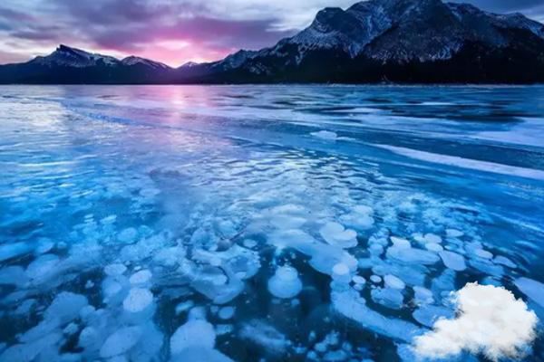 冰泡湖称为奇观,应该是名副其实了。对于没有见过冰泡湖的人而言,你很难想象出这是怎样一番风景。在厚厚的冰层之下,充满了形状各异的气泡,宛如一簇簇的海草在冰层下随波逐流。要知道这样独特的场景即便是在世界上也不是不为多见的,世界上仅有三处冰泡湖,加拿大的亚伯拉罕湖(人工湖)、俄罗斯的贝加尔湖以及我国新疆的赛里木湖。